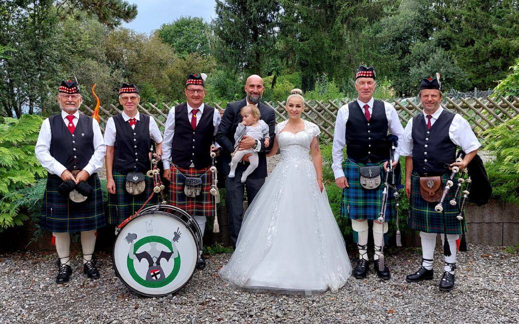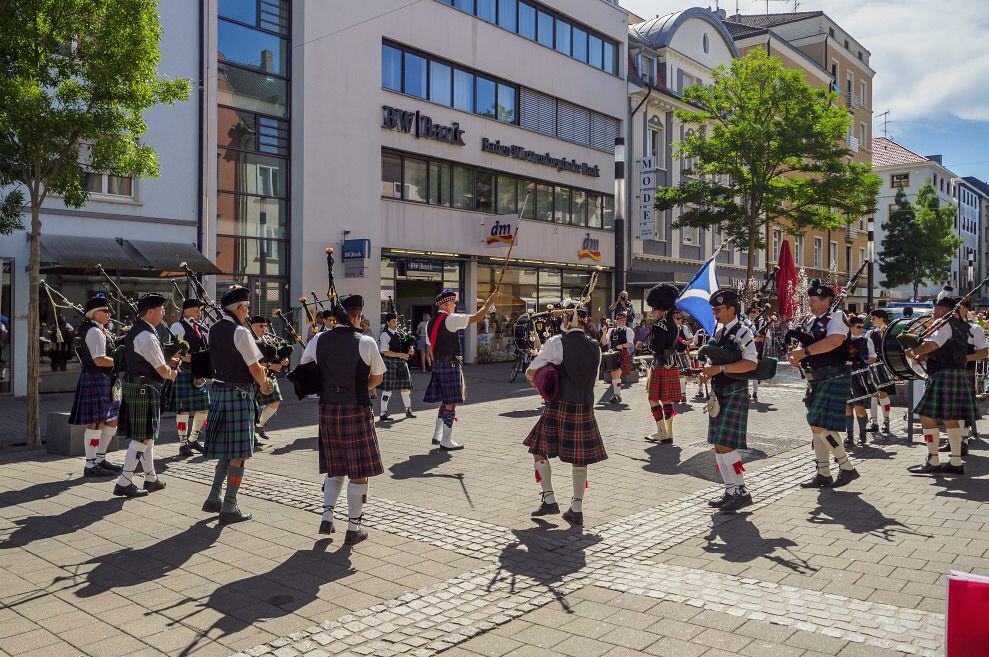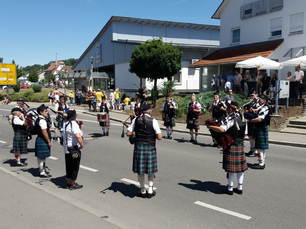 Einige unserer Musiker verstärkten die United Pipe Band bei einem Auftritt am 13. August in Singen. Bilder von Bernd Narr