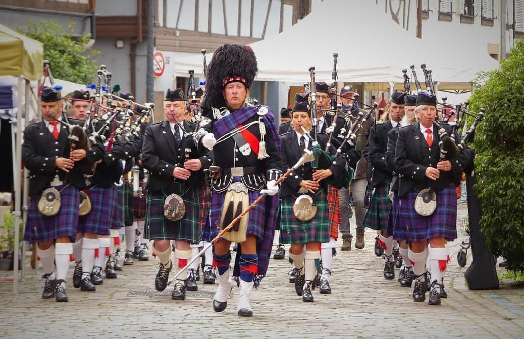 Zwei Musiker unserer Gruppe waren mit der Count Zeppelin Pipeband anfang Oktober wieder im Elsass unterwegs. Aus verschiedenen Bands der Region wurde eine beeindruckende Truppe zusammengestellt. Die Leitung hatte Drummajor Michael Pap.